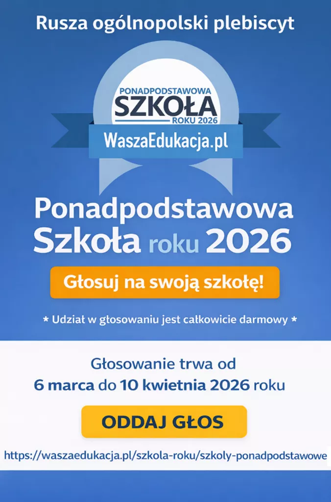 Trwa ogólnopolski plebiscyt „Ponadpodstawowa Szkoła Roku 2026”, w którym bierze udział również Nasza szkoła.